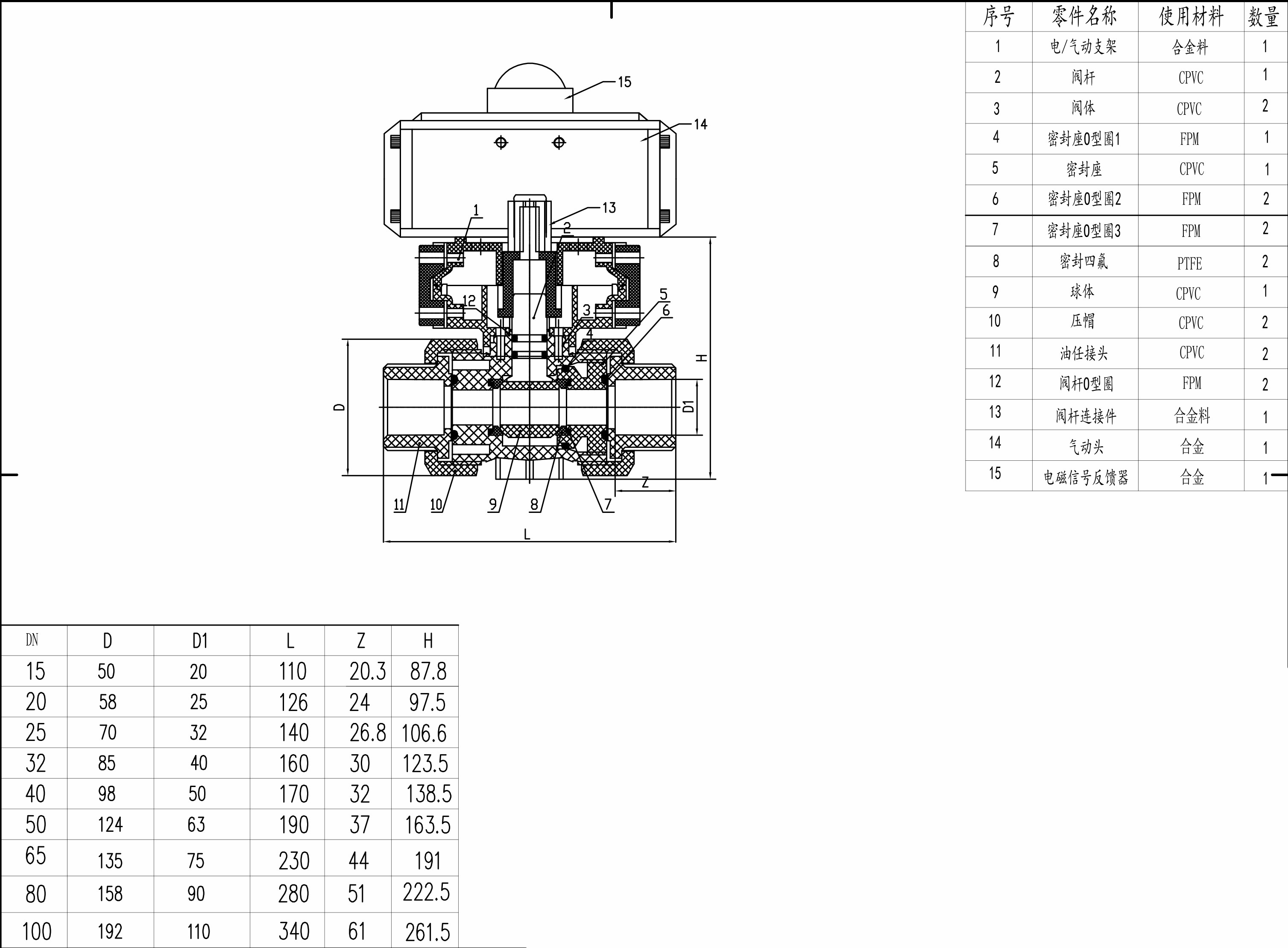 CPVC 气动双由令球阀 Q661F-10V